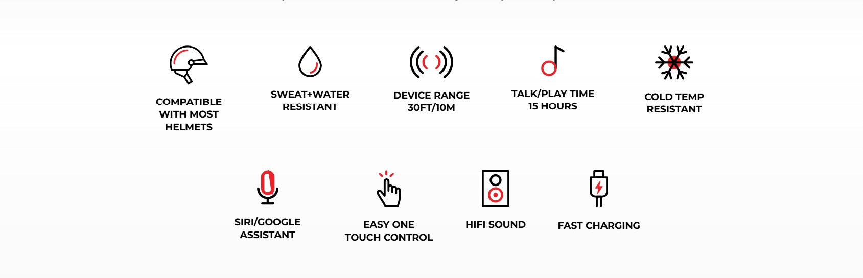 Our patented push-button control system allows you to adjust volume, change tracks, play/pause music and answer calls from outside your helmet without removing your gloves